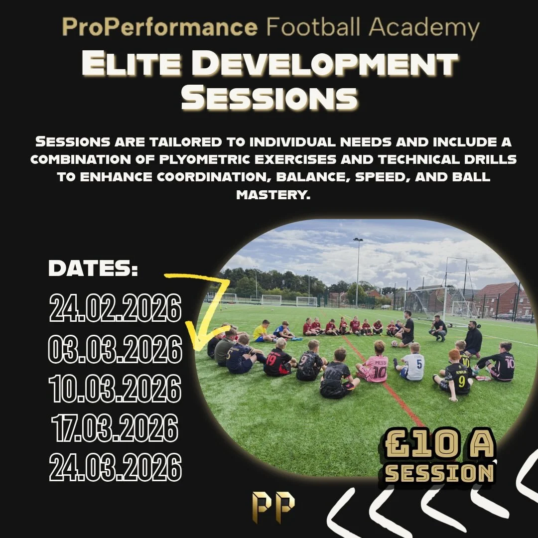Elite Sessions are for players aiming to reach Academy level, delivered in small, high-intensity groups with strong individual focus. Sessions include plyometrics, speed development, and technical work to support all-round progression.